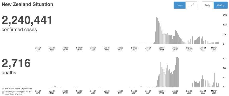 Remember we had virtually no Covid in New Zealand up to September 2021. See here for official Covid infection and death data for NZ:
